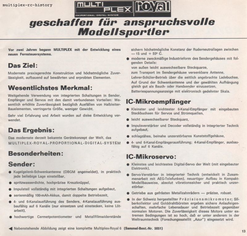 Die Multiplex Royal wurde anfangs in 4/6 Kanalausführung ab 1971 verkauft.
