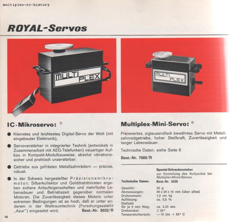 Diese Servos wurden seit September 1968 mit den Digitron Fernsteuerungen ausgeliefert. Diese sind nicht Nulllage verstellbar.
